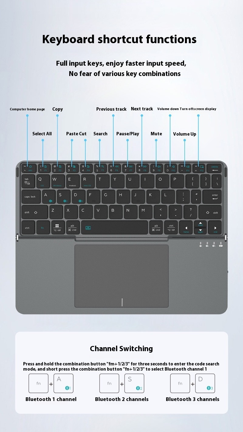 Wireless Bluetooth Folding Keyboard Phablet With Keyboard